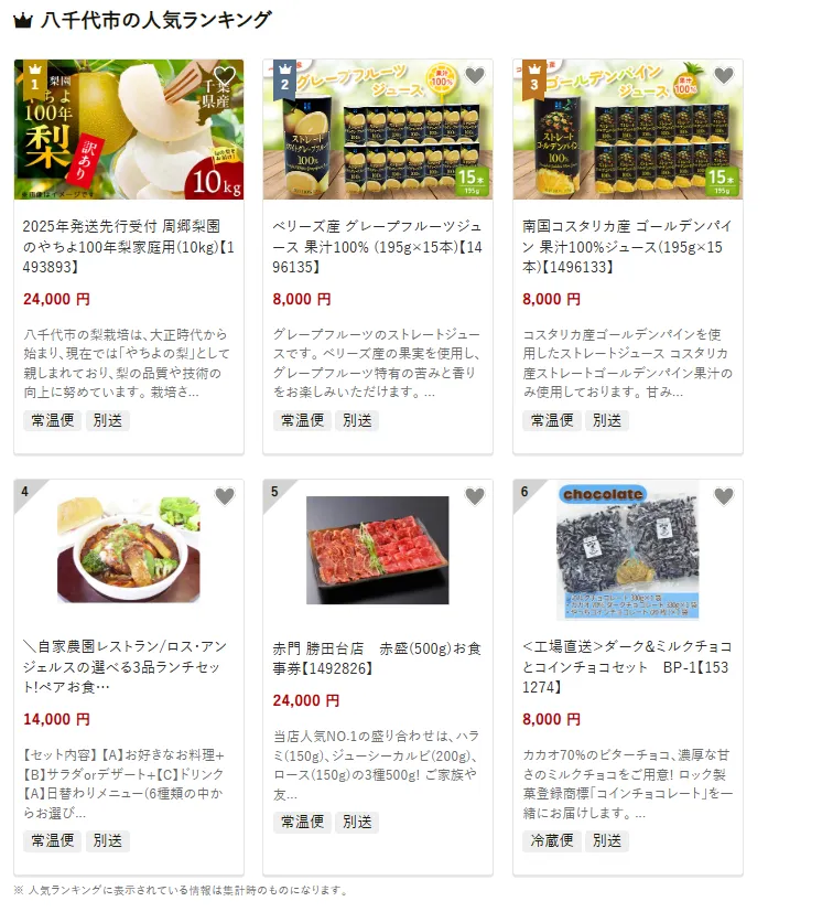 千葉県の市区町村別おすすめ返礼品ランキング