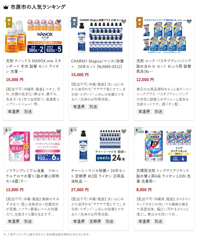 市原市で人気の返礼品は、「洗剤 ナノックス one スタン ダード 本体 詰替 セット LION 洗濯用 洗剤」15点です。高濃度コンパクト洗剤で、頑固な汚れや臭いをすっきり落とし、日常の家事を強力にサポートします。他には、「CHARMY Magica 除菌+24本セット」や、「洗剤 ルック バスタブクレンジング詰め合わせセット」なども人気です。寄付金は、生活環境の整備や防災対策をはじめ、福祉や教育の向上に活用されています。