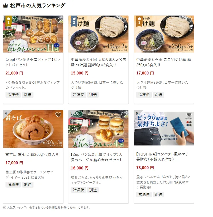 松戸市で人気の返礼品は、「Zopfパン焼き小屋セレクトパンセット 11種」です。全国的に名高いパン専門店が贈るバラエティ豊かなパンは、贅沢な食卓を演出します。他には、中華蕎麦とみ田の「大盛りまんぷく男つけ麺450g×2食入り」や「雷本店 雷そば 麺200g×3食入り」も人気です。寄付金は、教育・子育て支援や文化活動の推進に加え、防災・安全対策など住民の安心な暮らしづくりに活用されています。