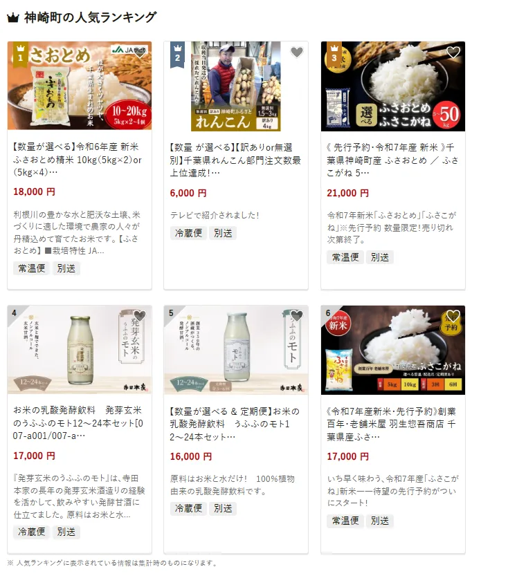 神崎町で人気の返礼品は、「令和6年産 新米 ふさおとめ 精米10kg(5kg×2袋)」。豊かな水と肥沃な土壌で育ったお米は、炊き上がりの香りと甘みが際立ちます。他には、テレビでも紹介された「千葉県れんこん3kg」や、発芽玄米を使用した「お米の乳酸発酵飲料 ふぁふぁのモト」も注目されています。寄付金は、有機農業の振興や伝統文化の保存に加え、教育や地域福祉の充実に活用されています。