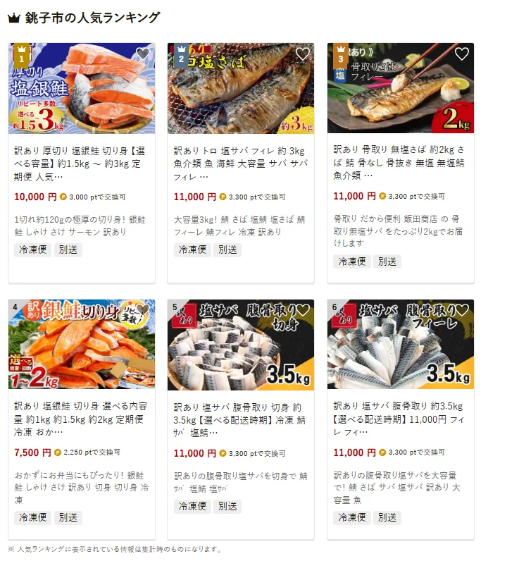 銚子市で人気の返礼品は、「訳あり切り身 銀鮭切り身約1.5kg〜3kg」です。1切れ120gの極厚カットで、食べ応え十分のボリュームが魅力です。他には、「訳ありトロ塩サバフィレ約3kg」や、「訳あり骨取り無塩さば約2kg」も選ばれています。寄付金は、水産業の振興や地域の産業基盤の整備に加え、子ども・子育て支援に活用されています。