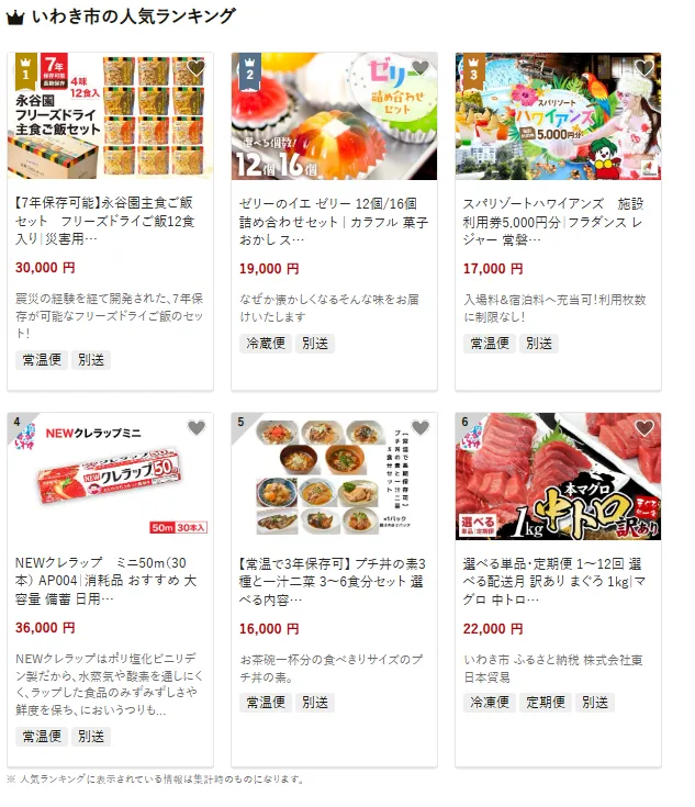 いわき市で人気の返礼品は震災の経験を生かした「7年保存可能なフリーズドライご飯セット」です。災害時の備えとして便利で、長期保存ができるため家庭でも安心して利用できます。他にも彩り豊かな「ゼリーのイエ詰め合わせセット」や、スパリゾートハワイアンズの「施設利用券」も好評です。