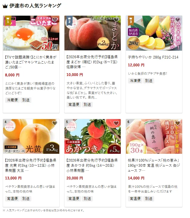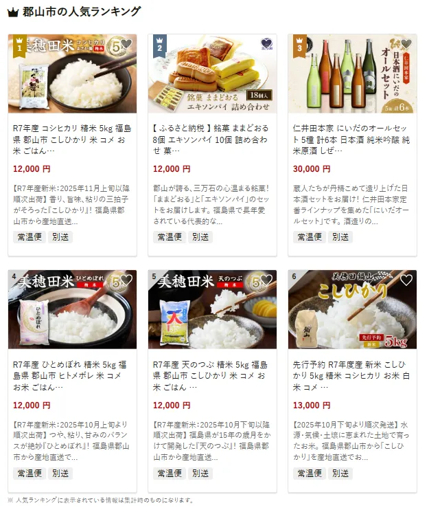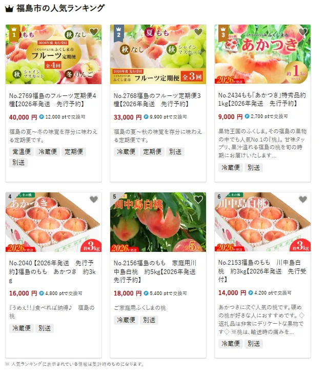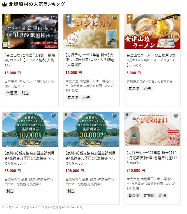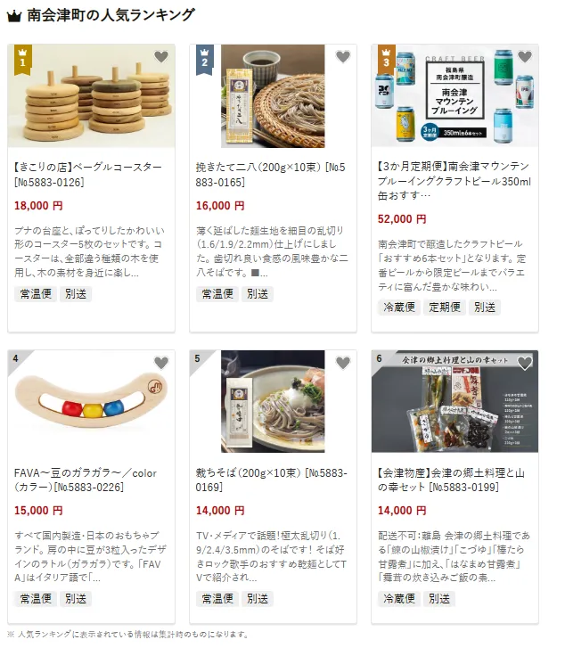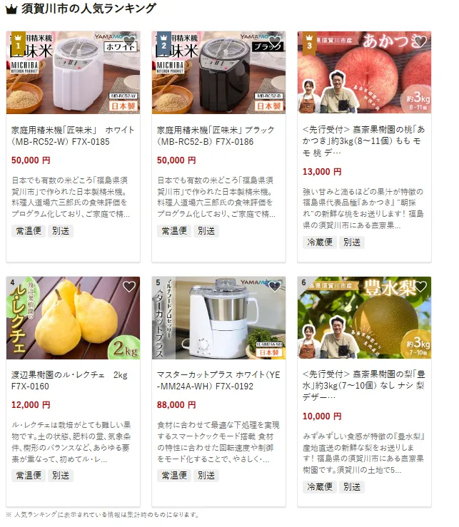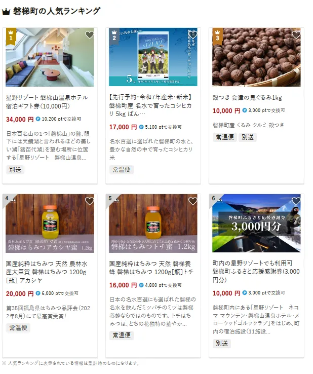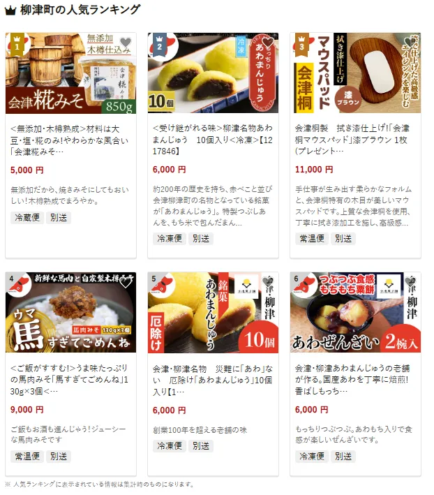 福島県の市区町村別おすすめ返礼品ランキング