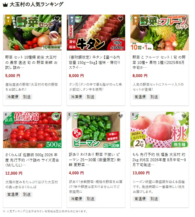 大玉村で人気の返礼品は新鮮な「旬の野菜セット」です。地元農家から直送される10種類前後の野菜は、健康志向の家庭に好評です。他にも、塩味で柔らかく、焼肉やBBQ、キャンプでも楽しめる希少部位の「牛タン(タン元・タン中)」や、野菜にフルーツを加えたセットも人気を集めています。