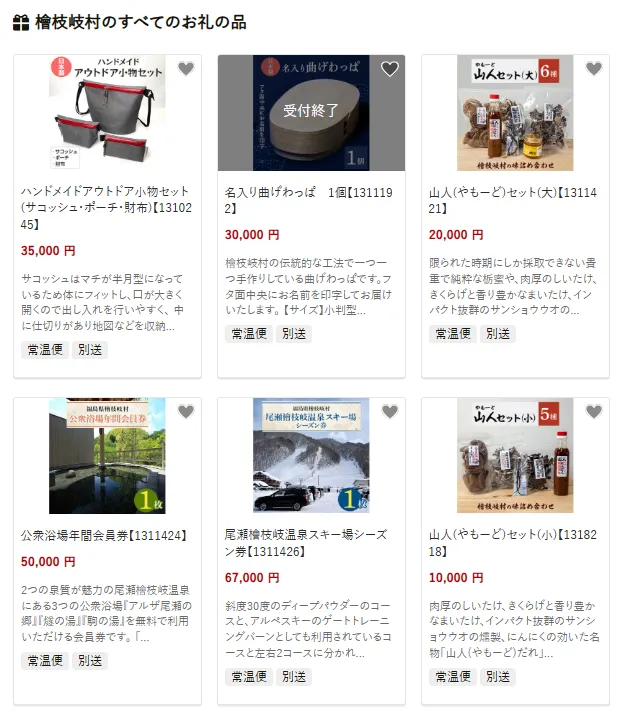 檜枝岐村で人気の返礼品は、ハンドメイドのアウトドア小物セット(サコッシュ・ポーチ・財布)です。日常でもアウトドアでも使える実用性の高いアイテムとして好評です。他にも名前入りの曲げわっぱや、地元の食材や特産品を詰め合わせた「山人セット(大)」も村ならではの伝統や自然の恵みを感じられると人気の商品です。