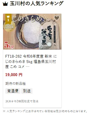 玉川村で人気の返礼品は福島県玉川村産の新品種「にじのきらめき」5kgです。ふっくらと炊きあがるお米は、家庭でも食卓を彩る一品として好評です。