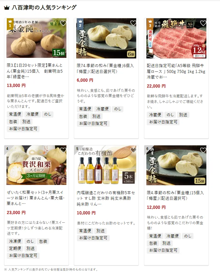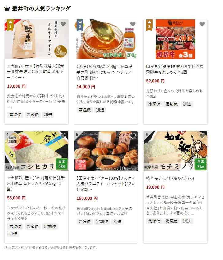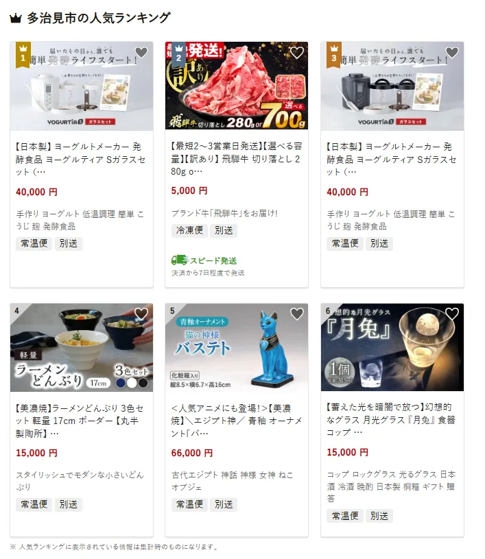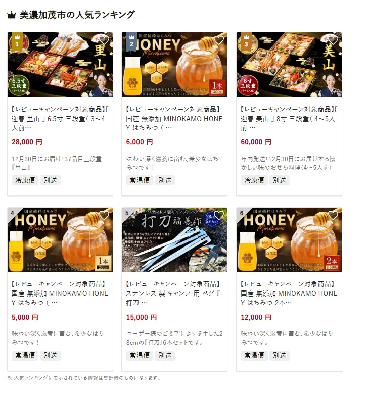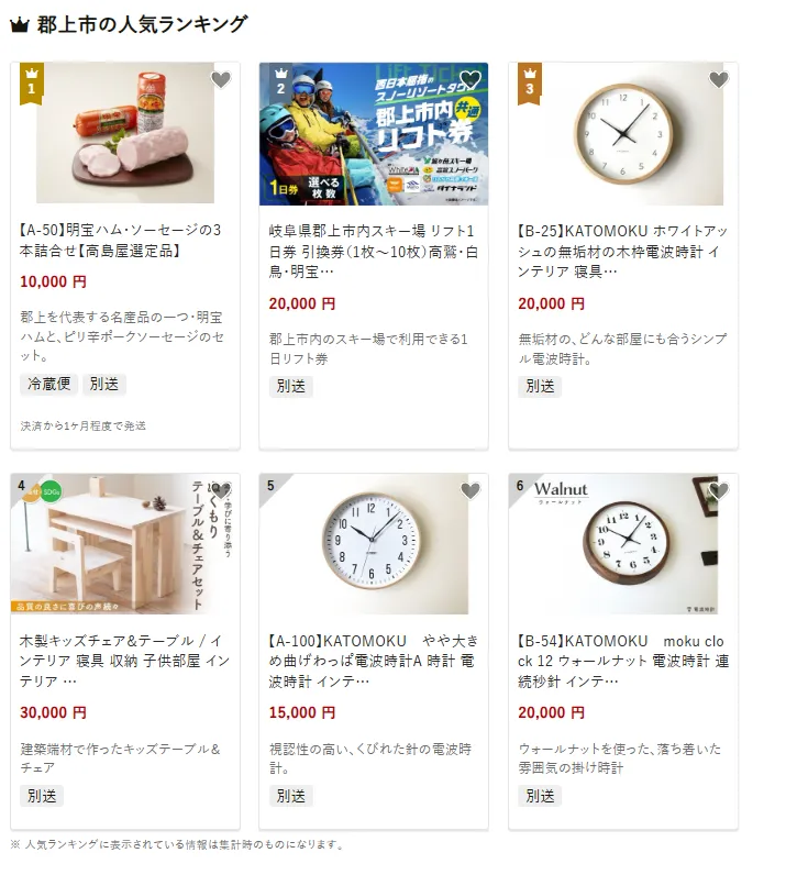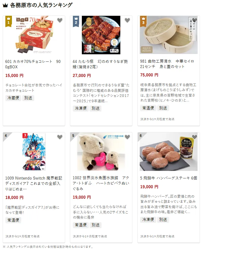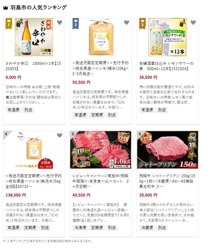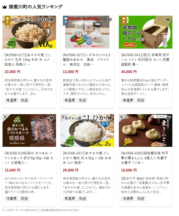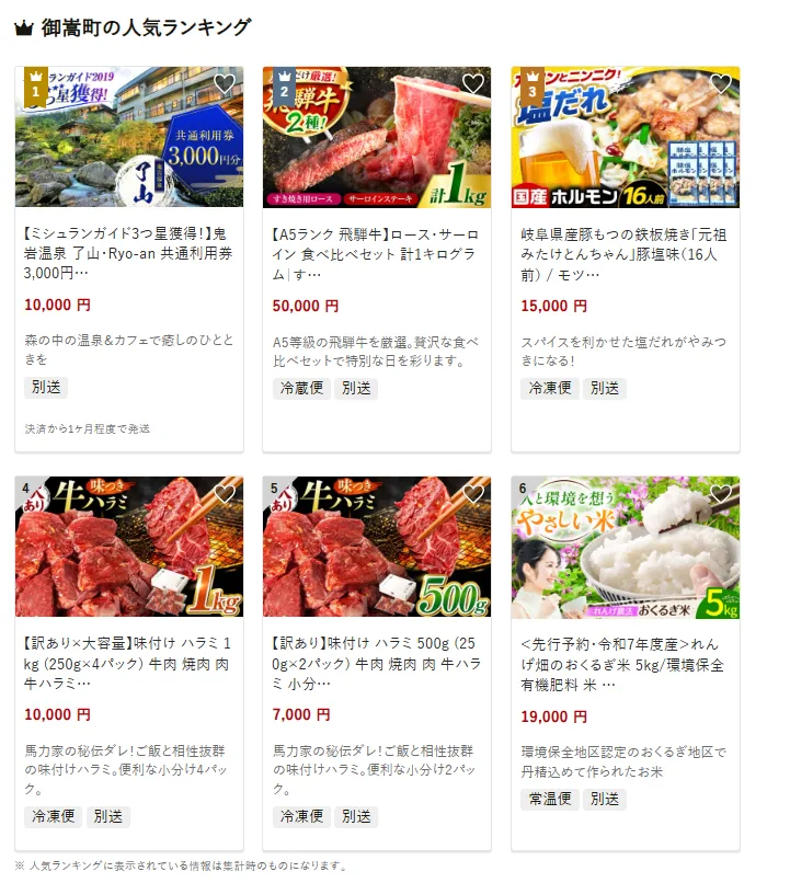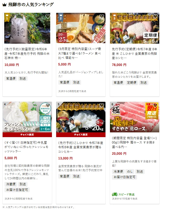 岐阜県の市区町村別おすすめ返礼品ランキング