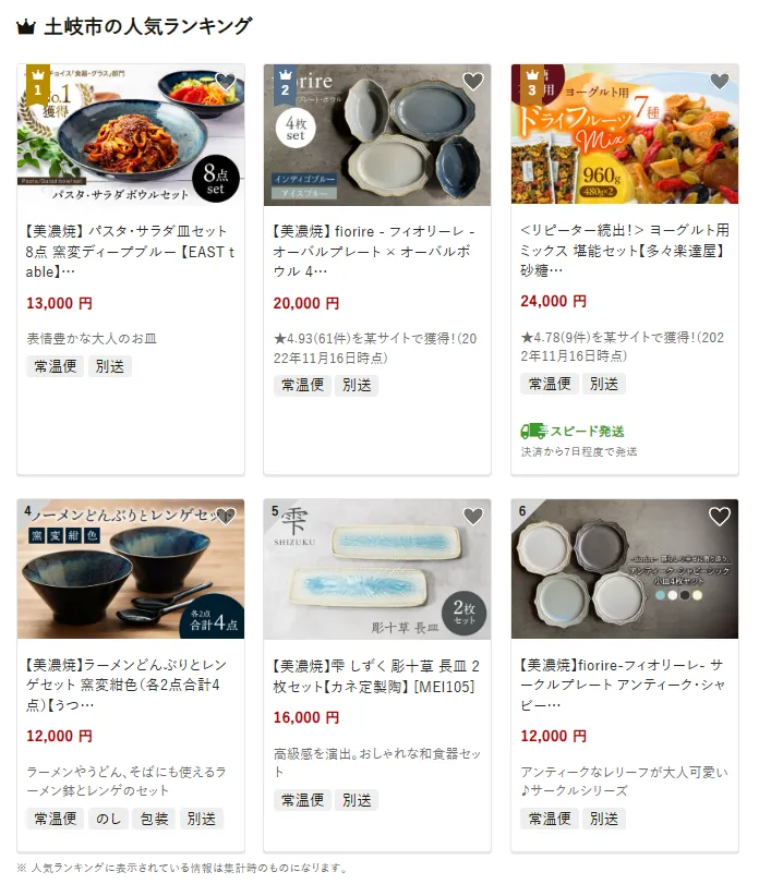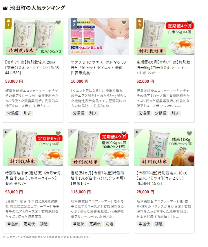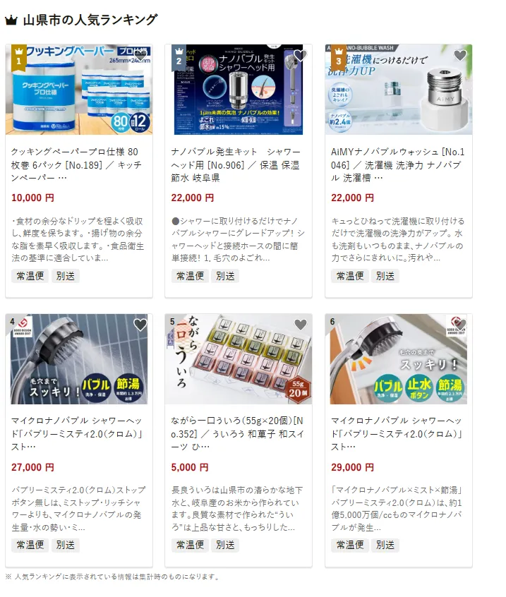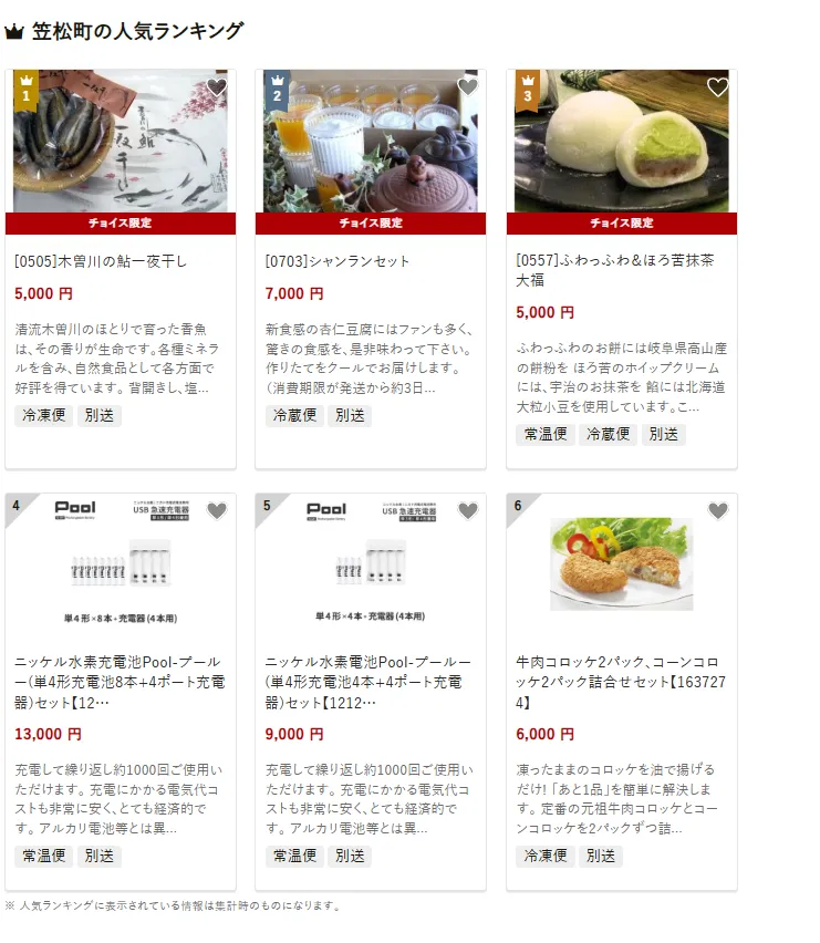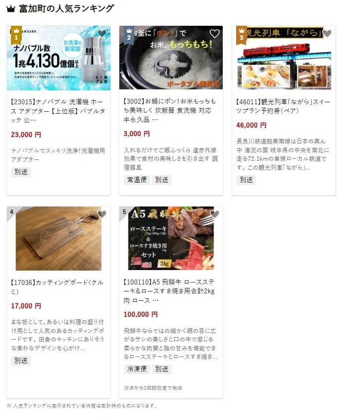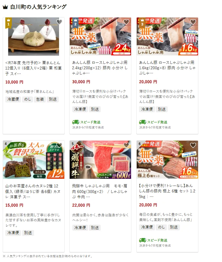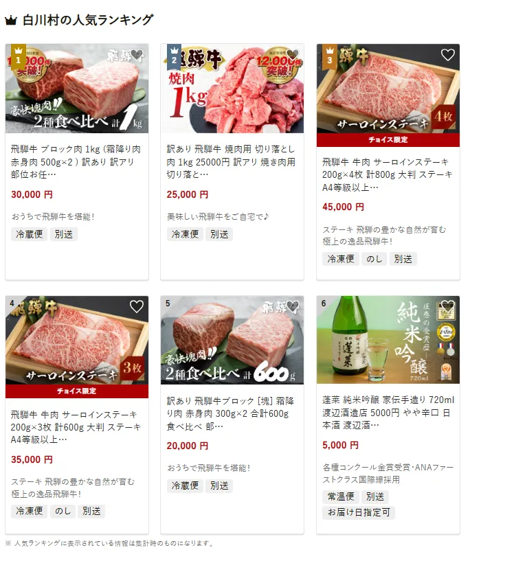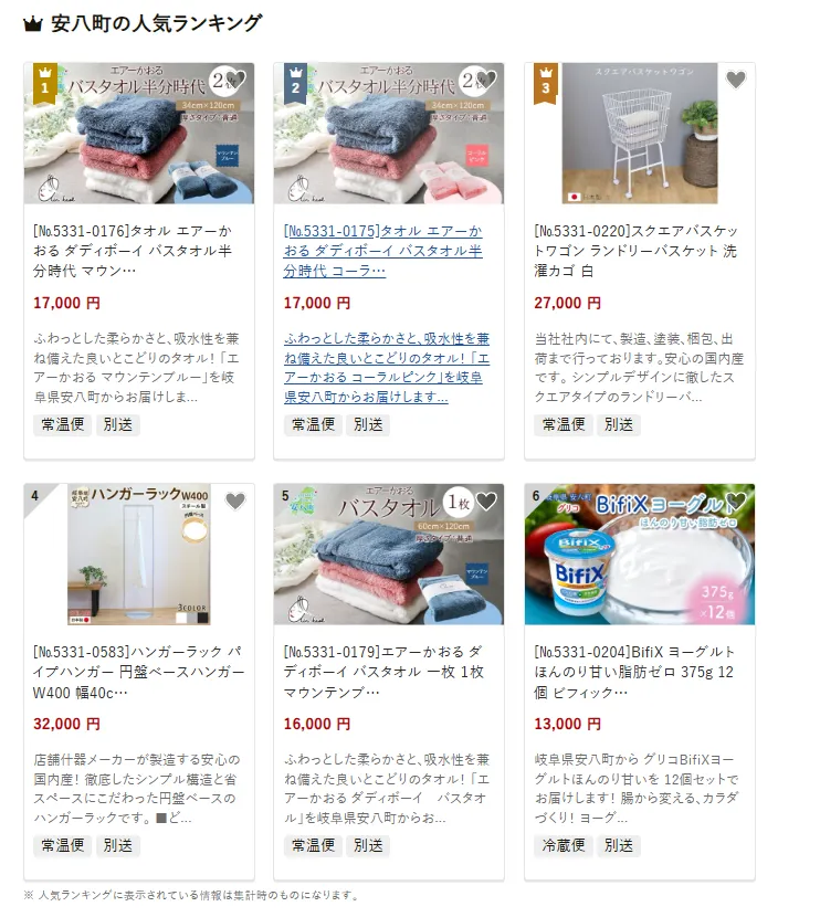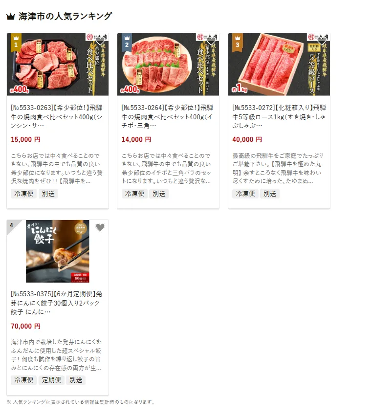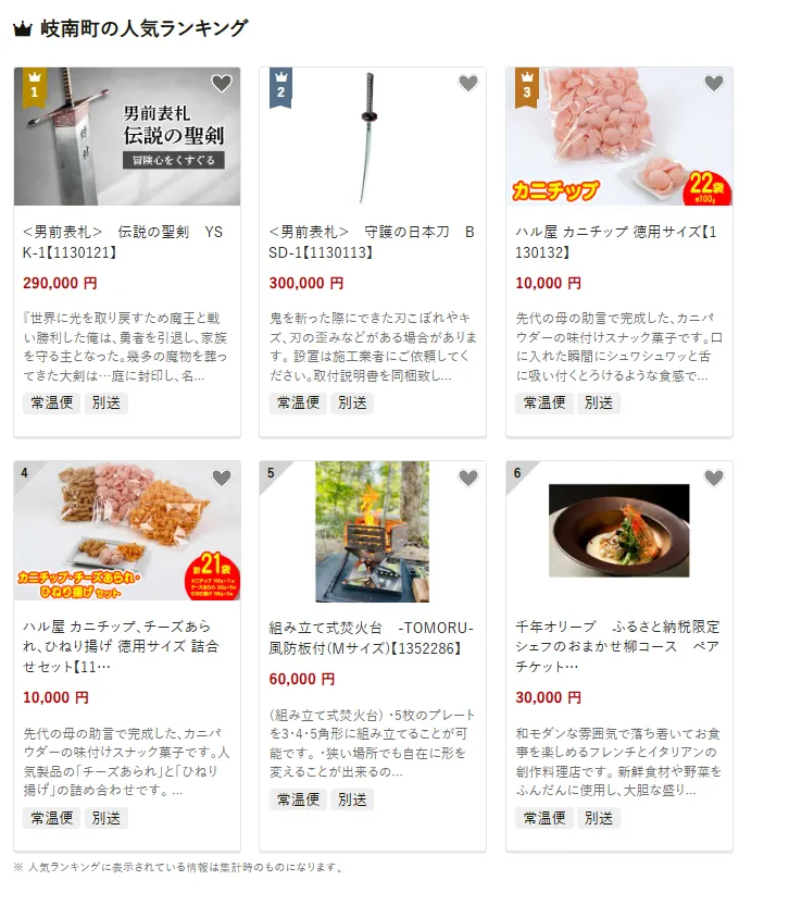 岐阜県の市区町村別おすすめ返礼品ランキング