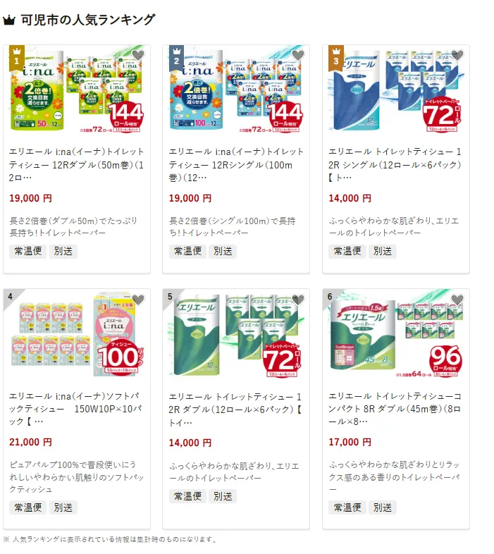 可児市で人気の返礼品は、「エリエール ina トイレットティシュー 12Rダブル 72ロール分」です。長さ2倍巻きで使いやすさと経済性に優れています。他にはシングル100m巻きやソフトパックティシューも人気。寄付金は、子育て支援や学校教育の充実、高齢者福祉などに活用されています。
