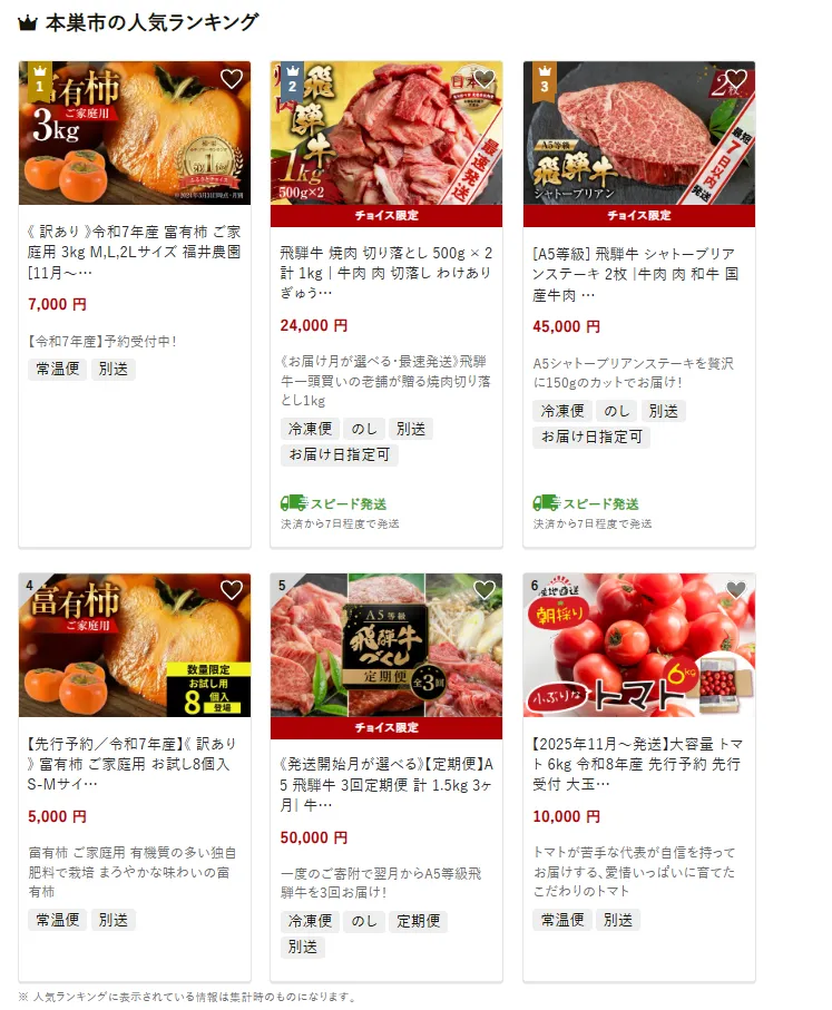 それでは各自治体のおすすめ返礼品ランキングを見ていきましょう!