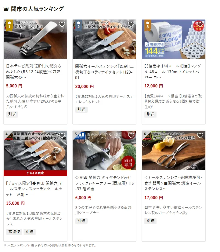 関市で人気の返礼品は、「刀関孫六の爪切り」です。「ZIP!」でも紹介された鋭い切れ味と美しいデザインの品です。他には関孫六ステンレス包丁&ペティナイフセットやダイヤモンド包丁シャープナーも人気です。寄付金は、子育てや教育支援、地域の医療・福祉施策、そして刃物のまちとしての伝統産業振興に活用されています。