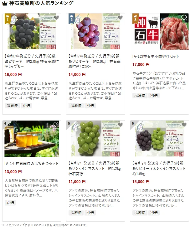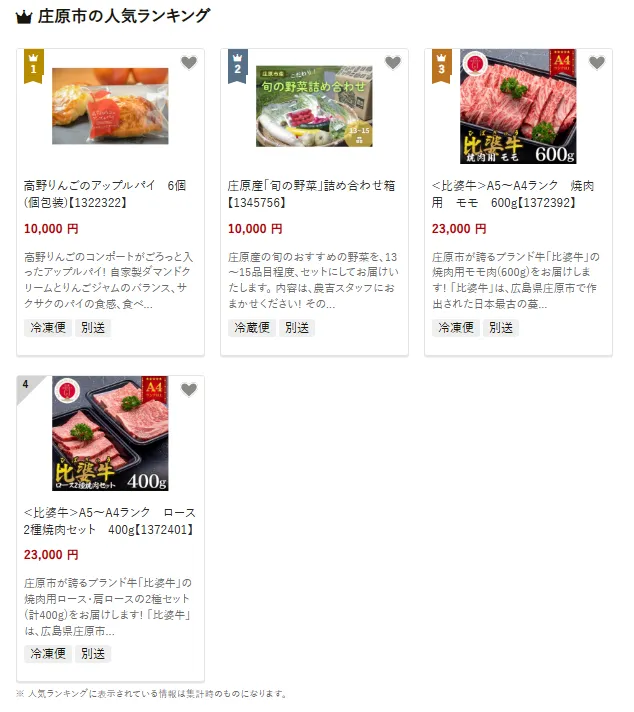 それでは各自治体のおすすめ返礼品ランキングを見ていきましょう!