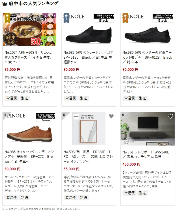 府中市で人気の返礼品は老舗が手掛ける「ちょっと贅沢なフリーズドライ味噌汁50食セット」です。天然醸造の府中味噌を使い、具だくさんで手軽に本格的な味が楽しめます。他にも広島発のスピングルムーヴによる「超撥水レザー靴」は、牛革素材で耐久性と快適さを兼ね備え、日常使いに最適なローカットモデルとショートサイドゴアが人気です。