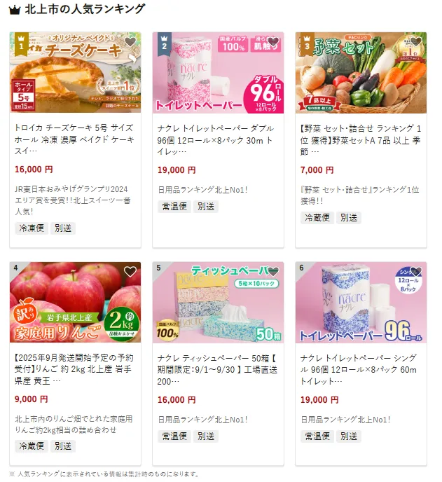 北上市で人気の返礼品はJR東日本おみやげグランプリ2024エリア賞を受賞した名店の逸品「トロイカ チーズケーキ」です。濃厚でなめらかな味わいが特徴で、誕生日や記念日の贈り物としても好評です。他にも生活必需品としてリピーターの多い「ナクレ トイレットペーパー」や、旬の野菜を詰め合わせた「季節のおまかせ野菜セット」が人気です。