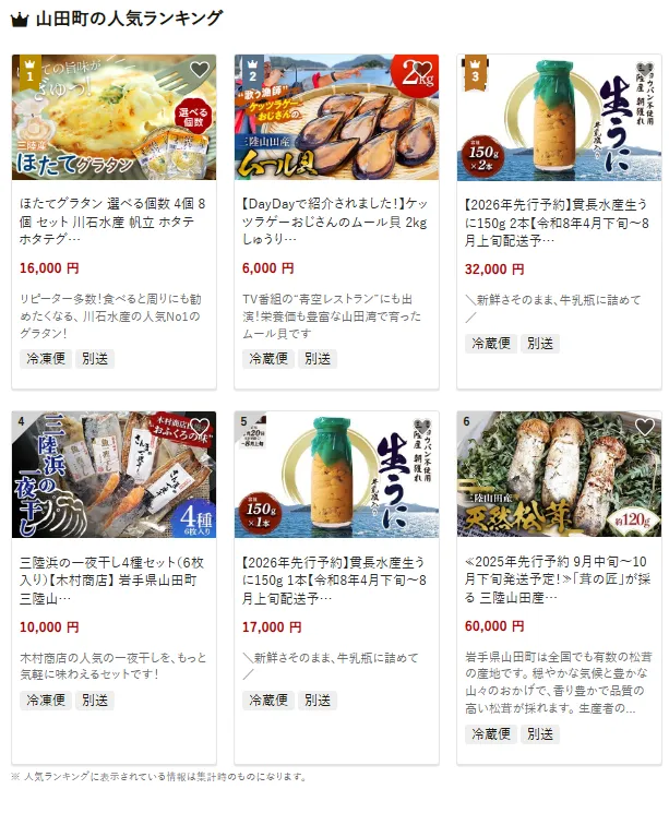 寄附金は、農林水産業などの地域特性を生かした産業の振興に活用され、山田町ならではの豊かな海や山の恵みを未来へとつなげる取り組みに役立てられています。