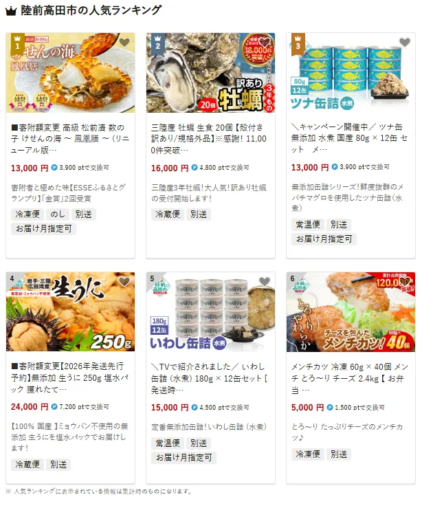 それでは各自治体のおすすめ返礼品ランキングを見ていきましょう!