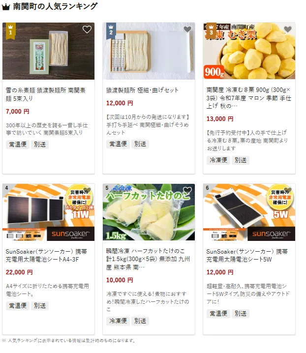 南関町で人気の返礼品は300年以上の伝統を誇る手仕事で丁寧に紡がれる「南関素麺」です。猿渡製麺所の雪の糸素麺や極細・曲げそうめんセットは、手延べならではのなめらかな食感が自慢です。他にも令和7年産の南関産むき栗は人の手で丁寧に仕上げられた冷凍品で、秋の味覚として好評です。