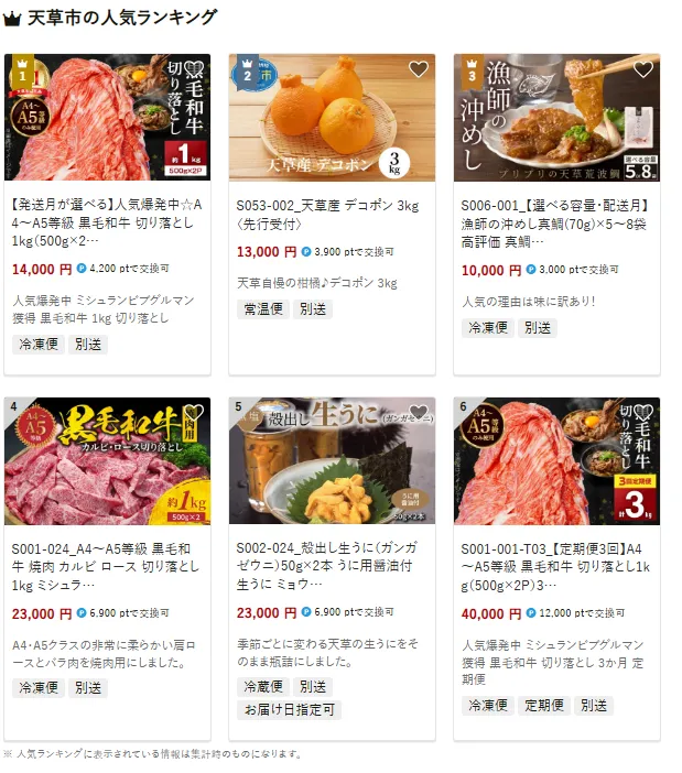 天草市で人気の返礼品はミシュラン・ビブグルマンを獲得した店舗が手がける「黒毛和牛切り落とし」1kgです。A4~A5等級のとろける旨みが自慢です。他にも天草の温暖な気候で育った「デコポン」や、ご飯のお供にぴったりの「漁師の沖めし 真鯛」も人気です。