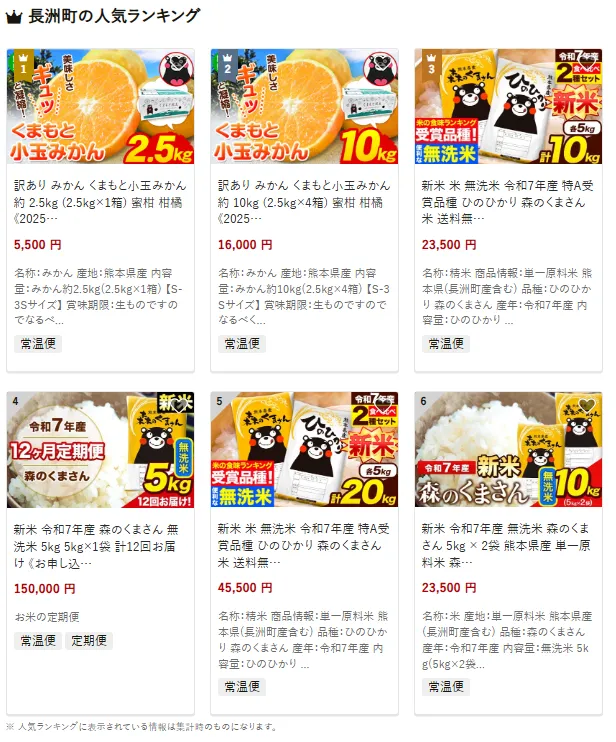 長洲町で人気の返礼品は、訳ありながらもたっぷり2.5kgや10kgの熊本県産小玉みかんです。甘くてジューシーな旬の柑橘を楽しめるのが魅力です。他にも令和7年産の特A受賞品種「ひのひかり」と「森のくまさん」の無洗米10kgセットも人気で、食べ比べも楽しめます。