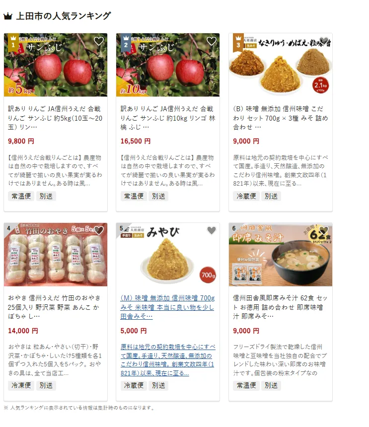 上田市で人気の返礼品は、りんご「JA信州うえだ合戦りんご サンふじ約5㎏」です。自然豊かな台地で育った果実は甘みと酸味のバランスが良く、食べ応えも抜群です。他には、信州味噌の詰め合わせやおやき、即席味噌汁セットも人気。寄付金は、子育て支援や教育環境の充実、真田の城下町としての観光振興に活用されています。