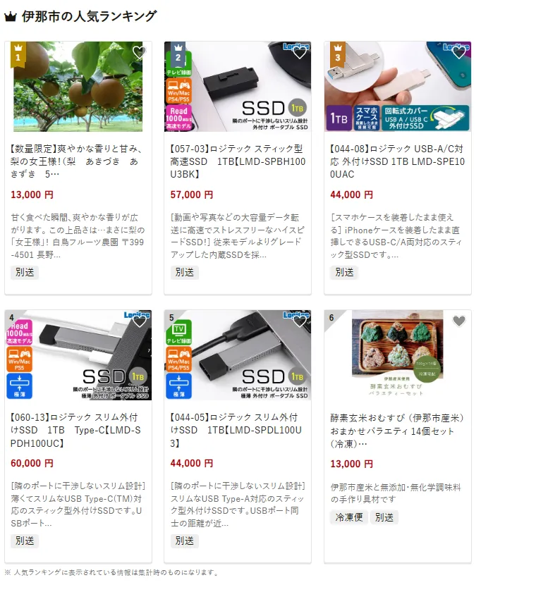伊那市で人気の返礼品は、爽やかな香りと甘みが特徴の梨「あきづき」です。新鮮でみずみずしく、秋の味覚を存分に楽しめます。他には、ロジテック製の大容量SSDや伊那米を使った酵素玄米おむすびもおすすめ。寄付金は、子ども医療費助成など教育・子育て支援や、森林を守る環境保全に活用されています。