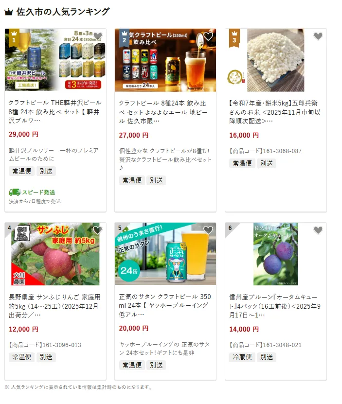 佐久市で人気の返礼品は、クラフトビールTHE軽井沢ビール8種24本セットです。多彩な味わいが揃い、飲み比べを楽しめます。他には、長野県産りんご「サンふじ」や五郎兵衛米、信州産プルーンなどもおすすめ。寄付金は、教育や子育て支援、また地域医療や防災対策の充実に活用されています。