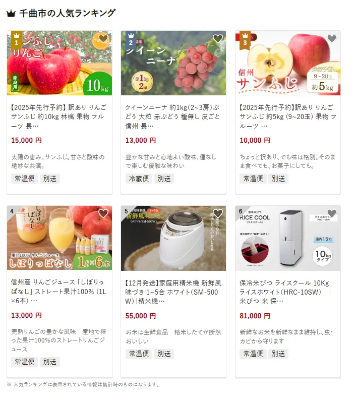 千曲市で人気の返礼品は、りんご「サンふじ」約10㎏です。甘みと酸味のバランスが絶妙で、贈答用にも人気です。他には、ぶどう「クイーンニーナ約1㎏」や信州産りんごジュース、家庭用精米機もおすすめ。寄付金は、教育や高齢者福祉、さらには千曲川の自然環境保全に活用されています。