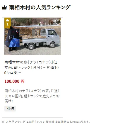 南相木村で人気の返礼品は、薪「ナラ(コナラ)」です。軽トラック1台分、片道100キロ圏内まで直接お届けする便利な内容です。他には、地域資源を活かした木材製品も注目されています。寄付金は、教育や福祉の支援、自然豊かな森林環境を守る活動に活用されています。