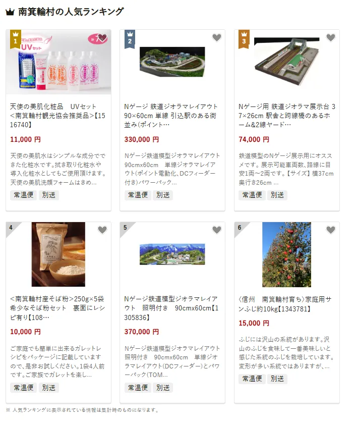 南箕輪村で人気の返礼品は、美肌化粧品「天使の美肌シリーズ」UVケアセットです。天然由来成分を使用した優しい使い心地が魅力です。他には、鉄道ジオラマレイアウトや南箕輪村のそば粉なども選ばれています。寄付金は、教育や福祉の向上、自然と共生する地域づくりに活用されています。