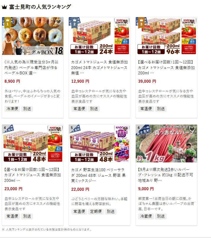 富士見町で人気の返礼品は、ベーグル専門店が作るベーグルBOXです。専門店が作る18個入りセットで、外はパリッと中はもっちりとした食感が魅力です。他には、カゴメのトマトジュース定期便や真っ赤なルバーブ約1㎏も人気。寄付金は、子育て・教育支援や、八ヶ岳の自然環境保護に活用されています。