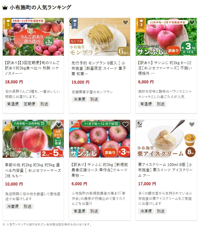 小布施町で人気の返礼品は、「旬のりんご訳あり約3㎏ 食べ比べ 3種セット」です。旬のりんごを一度に楽しめるセットで、味わいの違いを食べ比べできます。他には、老舗菓子店が手掛ける小布施堂モンブラン、甘みが強いサンふじ、地元産の栗を使った小布施堂の栗アイスクリームも人気です。寄付金は、教育支援や福祉充実、栗と北斎のまちの魅力発信に活用されています。