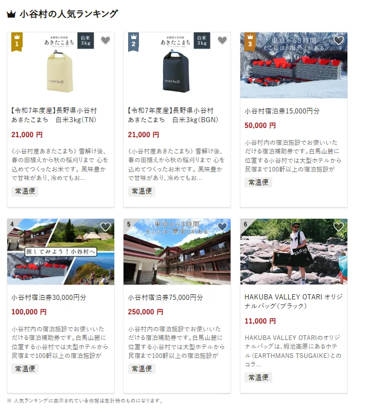 小谷村で人気の返礼品は、長野県小谷村「あきたこまち」白米3㎏です。冷涼な気候と清らかな水で育ったお米は、風味豊かで食卓にぴったり。他には、小谷村宿泊券15,000円分やオリジナルバッグも好評です。寄付金は、教育や医療の充実、そして北アルプスの自然環境保護や観光振興に役立てられています。
