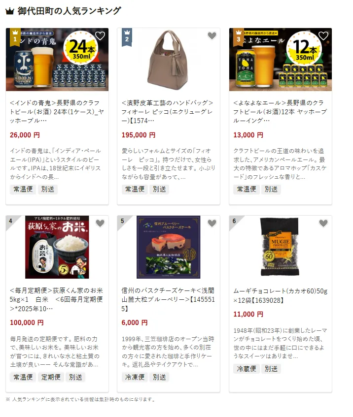 それでは各自治体のおすすめ返礼品ランキングを見ていきましょう!