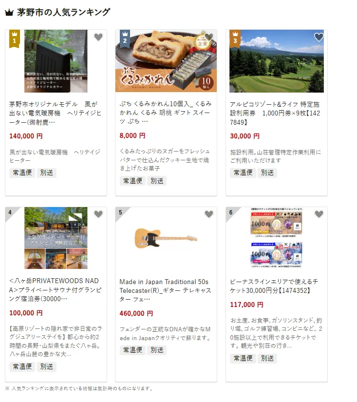 茅野市で人気の返礼品は、風が出ない電気暖房機「ヘリテイジヒーター」です。冬を快適に過ごせる人気の製品です。他には、くるみかれんや高原リゾート宿泊券、アルピコリゾート&ライフもおすすめ。寄付金は、学校教育を支える学習支援や、地域の伝統文化の継承に活用されています。