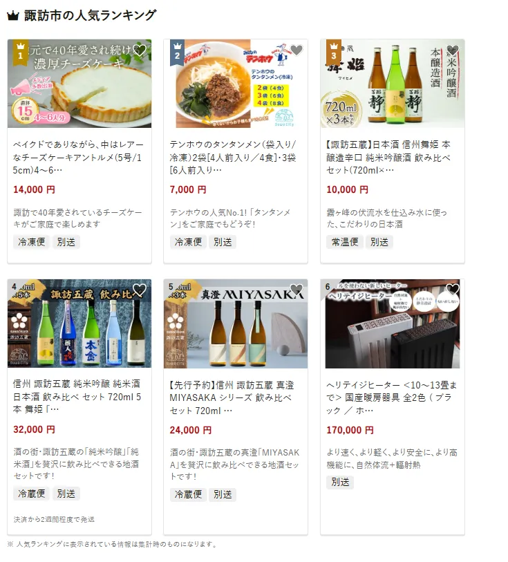 諏訪市で人気の返礼品は、老舗の濃厚チーズケーキ「ベイクドでありながら、中はレアーなチーズケーキアントルメ」です。40年愛され続ける伝統の味が楽しめます。他には、テンホウのタンタンメンや日本酒「諏訪五蔵」の飲み比べセットも人気。寄付金は、子どもや高齢者の福祉、また湖と温泉街を活かした観光振興に活用されています。