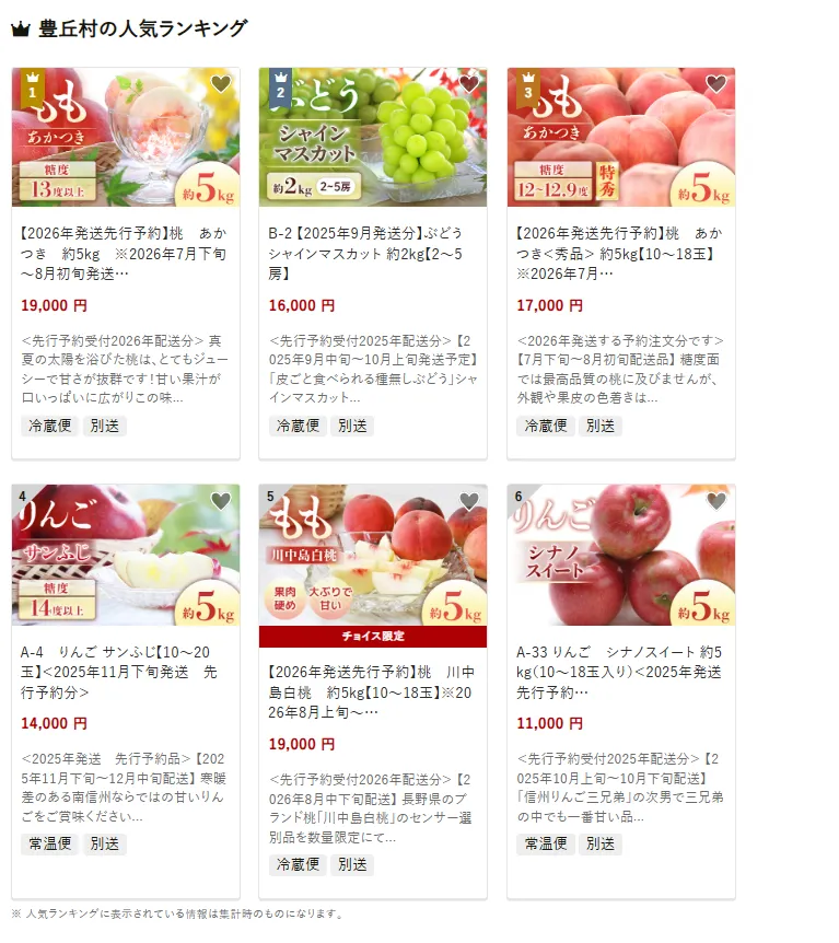 豊丘村で人気の返礼品は、桃「あかつき」約5kgです。糖度13度以上の甘みが特徴で、夏の贈答用にも最適です。他には、シャインマスカット約2㎏や川中島白桃を約5㎏、糖度14度以上のサンふじ約5㎏などの果物が人気。寄付金は、教育・福祉の充実や、果樹農業を守る地域づくりに活用されています。