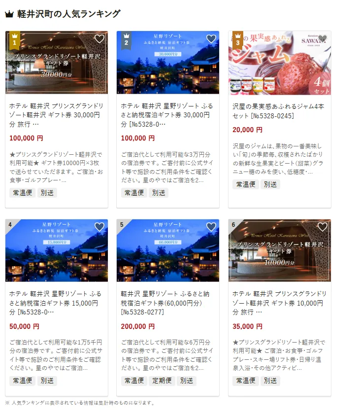 軽井沢町で人気の返礼品は、ホテルプリンスグランドリゾート軽井沢の宿泊ギフト券30,000円分です。高原リゾートで贅沢な滞在を満喫できます。他には、星野リゾート宿泊ギフト券や沢屋の果実感あふれるジャムもおすすめ。寄付金は、豊かな森と清流を守る自然環境保護や、国際リゾート地としての観光振興に活用されています。