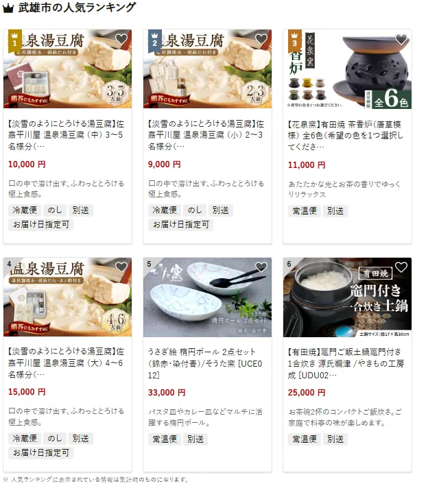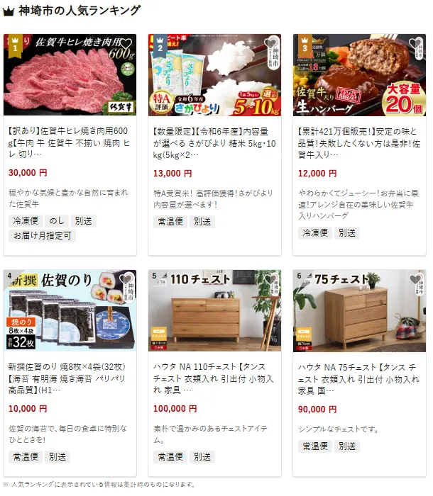 佐賀県の市区町村別おすすめ返礼品ランキング