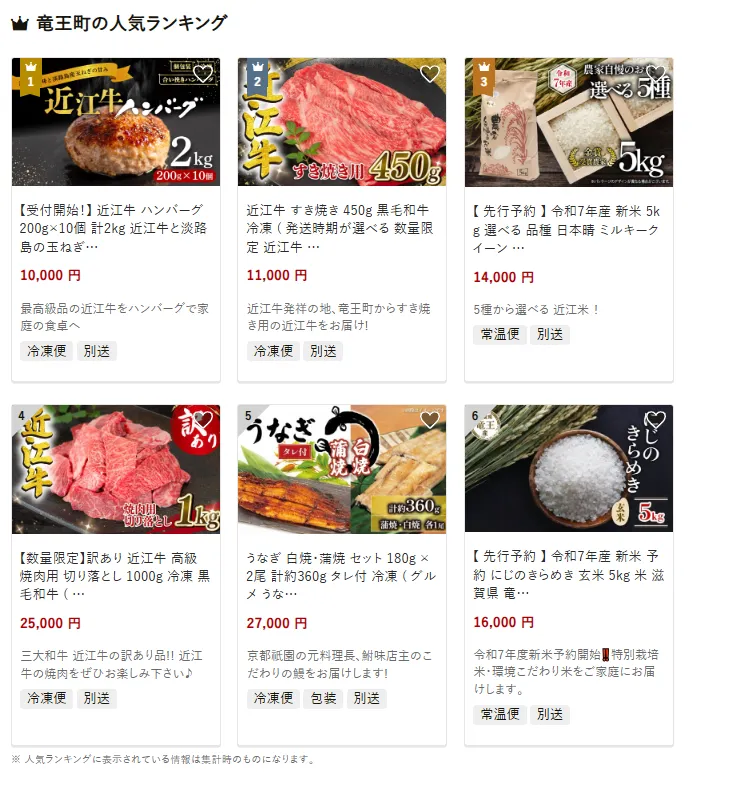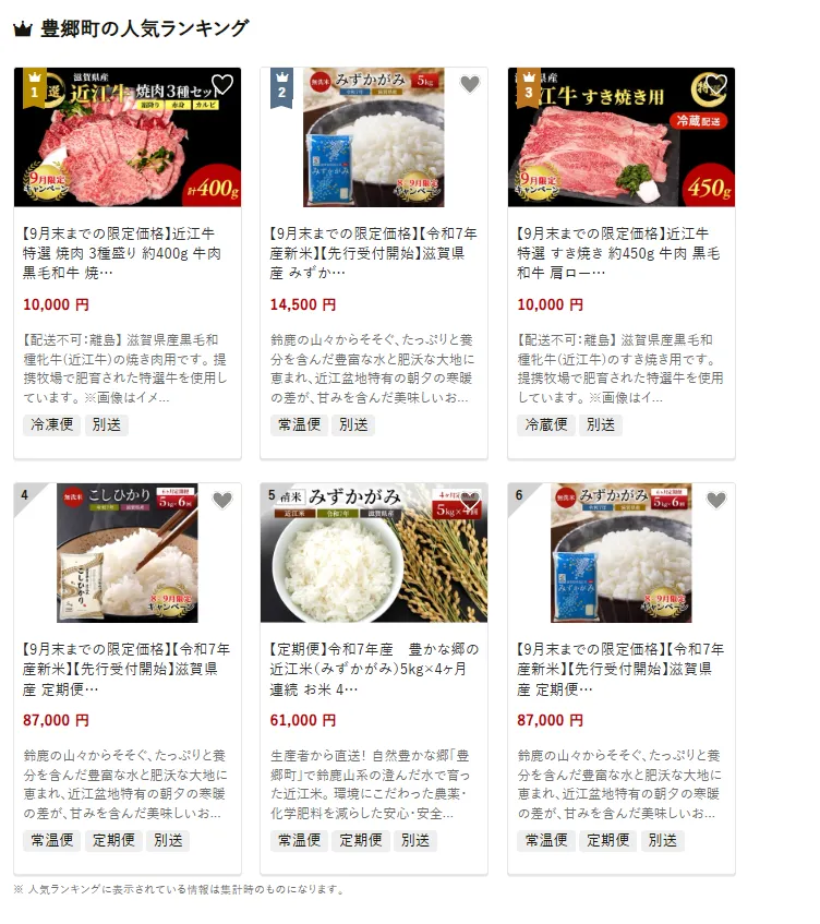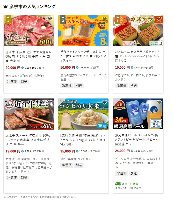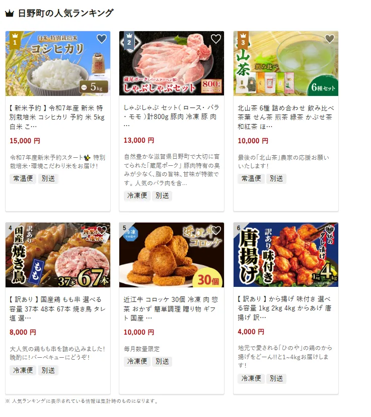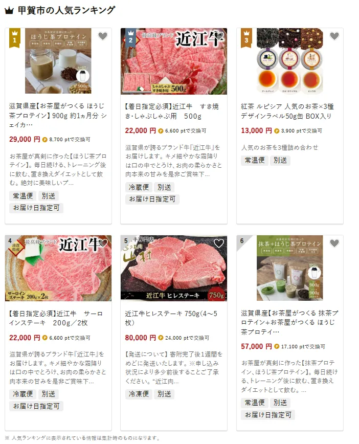 滋賀県の市区町村別おすすめ返礼品ランキング