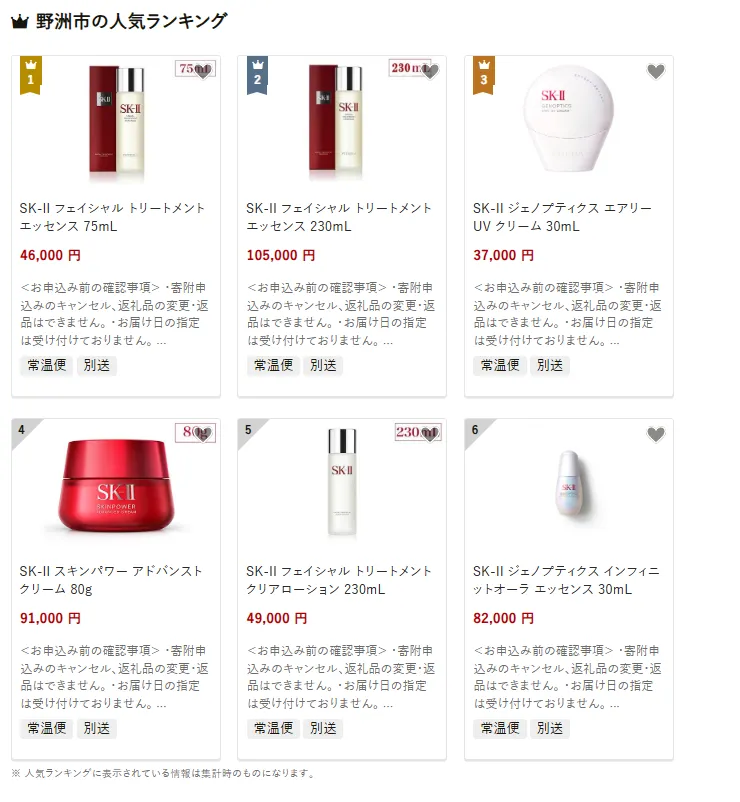 野洲市で人気の返礼品は、SK-II フェイシャルトリートメントエッセンス75mLです。世界的に評価の高い化粧水で肌を整えます。他には同エッセンス230mLや、SK-II ジェノプティクス エアリーUVクリーム30mLも選ばれています。寄付金は、学校や子育て支援を進める子育て・教育や、高齢者や障がい者福祉を支える健康・福祉に活用されています。