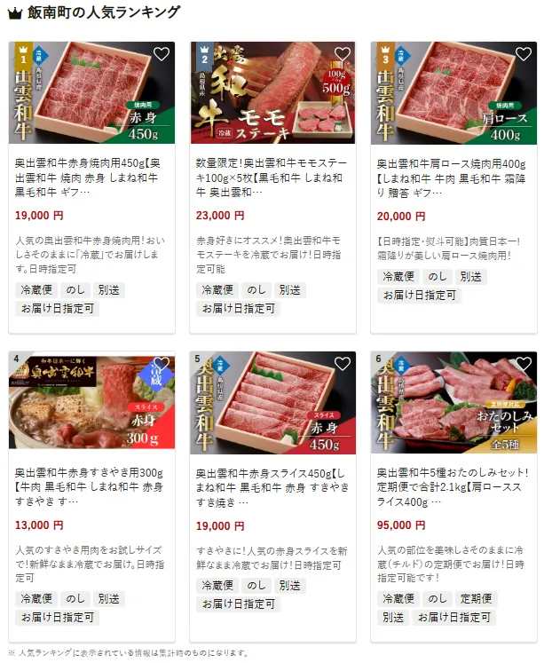 飯南町で人気の返礼品は、きめ細かな肉質と上質な赤身が魅力の「奥出雲和牛赤身焼肉用450g」です。他にも霜降りと赤身のバランスが絶妙な「奥出雲和牛モモステーキ100g×5枚」や、ジューシーで柔らかな「肩ロース焼肉用400g」も贈答用に好評です。いずれもA5等級中心の品質で高く評価されています。