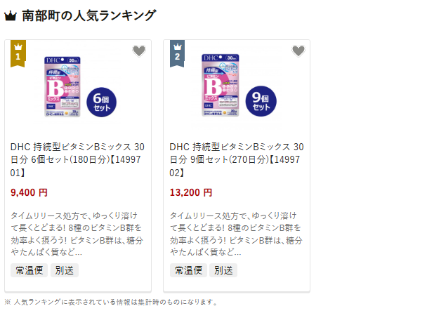 南部町で人気の返礼品は、「DHC 持続型ビタミンBミックス 30日分6個セット」です。6個や9個のまとめ買いが可能で健康志向の方に支持されています。寄付金は、子育て支援や教育振興、健康福祉の充実、観光振興など、暮らしを支える幅広い事業に活用されています。