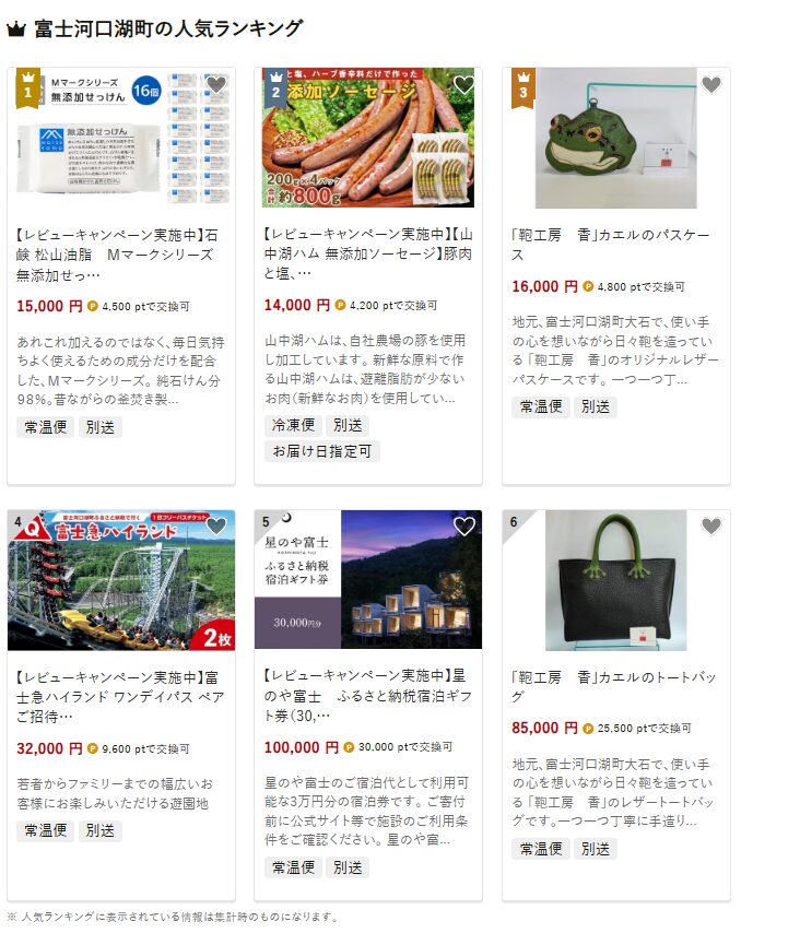 富士河口湖町で人気の返礼品は、石鹸 松山油脂「Mアークリシリーズ」16個セットです。無添加にこだわったやさしい使い心地が支持されています。他には、無添加ソーセージ詰め合わせや、富士急ハイランドのペア入場券、星のや富士宿泊ギフト券など多彩な品が揃います。寄付金は「子ども支援事業」や「環境保全支援事業」に活用されています。