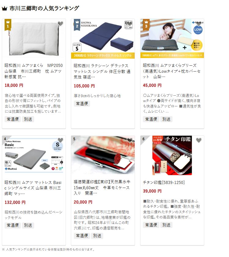 市川三郷町で人気の返礼品は、昭和西川ムアツまくらMP2050の高品質寝具です。快適な眠りを追求したマ枕は、健康的な生活を支える逸品として人気を集めています。他には天然黒水牛の印鑑やチタン印鑑など、実用性の高い返礼品も揃います。寄付金は「教育環境の充実」や「移住・定住支援」に活用され、人材育成と地域活性化に繋げています。