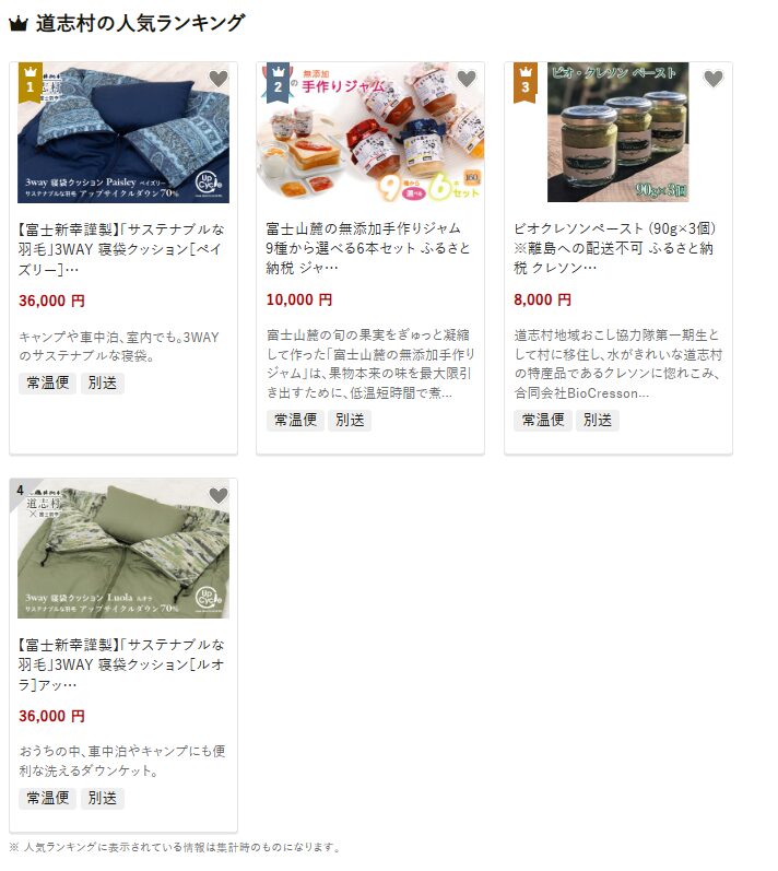 道志村で人気の返礼品は、「富士新幸謹製 サステナブルな羽毛3WAY寝袋クッション」です。キャンプや車中泊で使える多機能アイテムとして注目されています。他には、無添加ジャムやビオクレソンペーストも人気。寄付金は、村政運営や地域振興に活用され、水のきれいな環境を守りながら地域活性化を進めています。