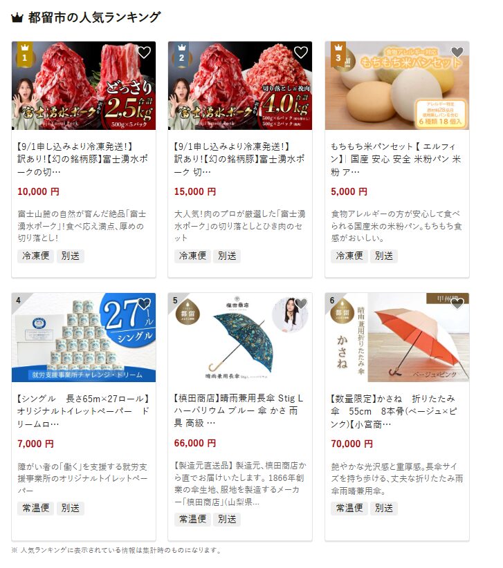 それでは各自治体のおすすめ返礼品ランキングを見ていきましょう!