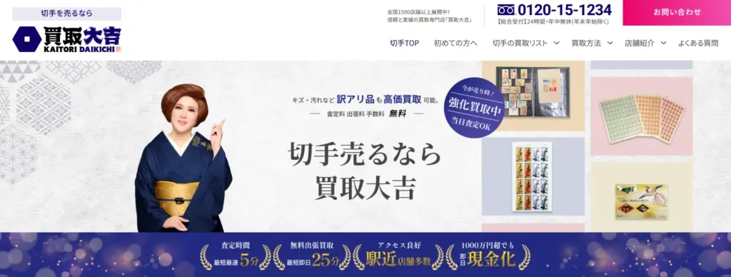 切手買取以外も豊富なジャンルの買取を展開しており、累計買取点数50万件以上、買取金額1000億円という実績をもち、安心して利用できる出張買取サービスです。