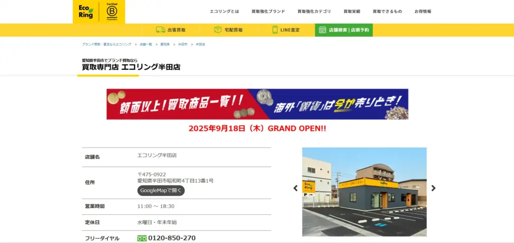 | 買取方法 | 出張買取、催事買取 |