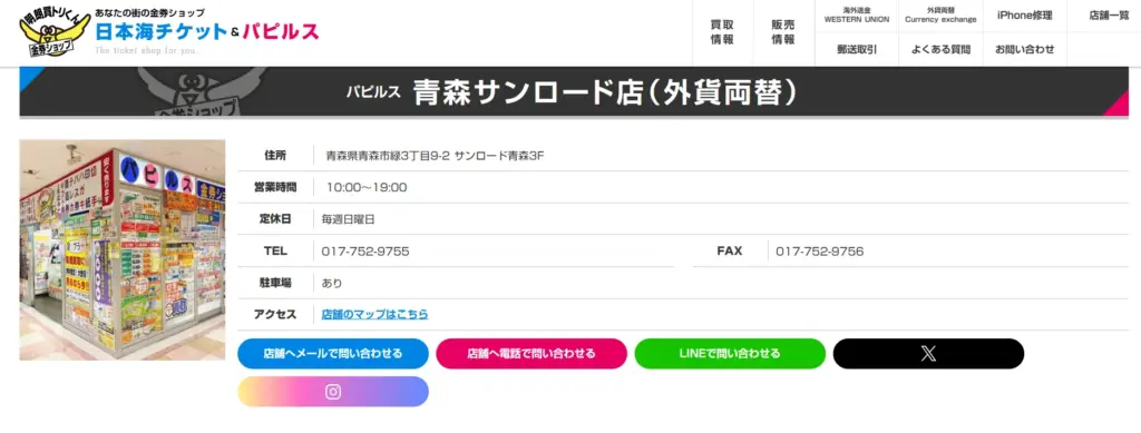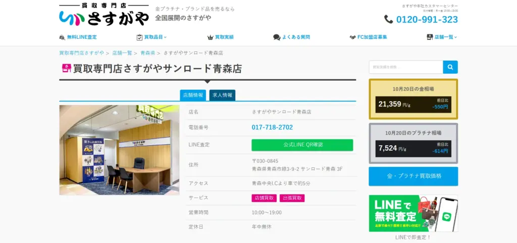 | 店舗名 | おたからや さくら野百貨店青森本店 |