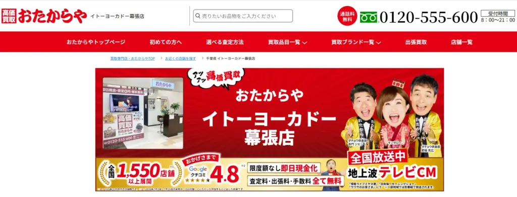 全国に実店舗も構えつつ、自宅に居ながら査定してもらえる全国対応の出張買取、宅配買取が高い支持を受けています。